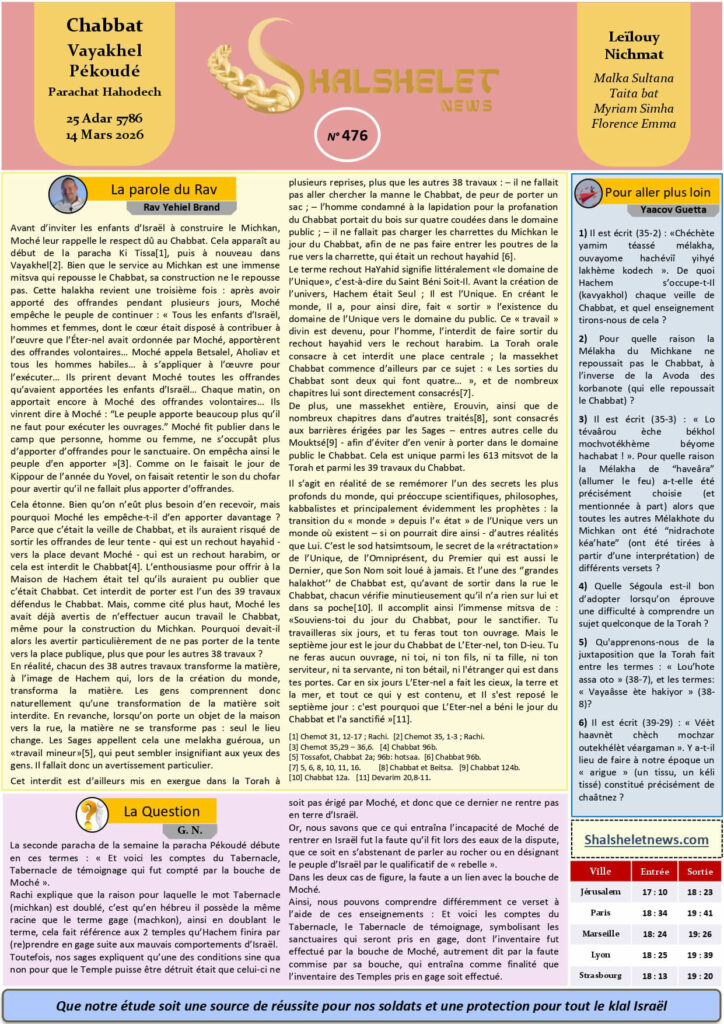 - L’exil : un plan divin et non un accident, par Rav Brand