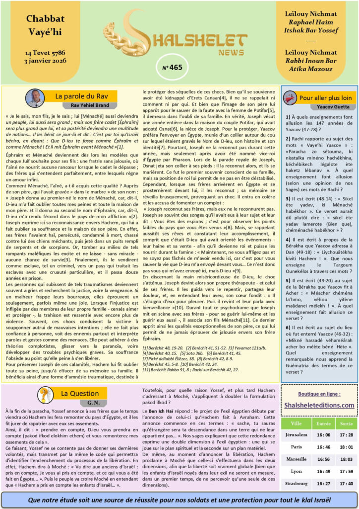 - L’enseignement de Yossef à son fils Ménaché, par Rav Brand