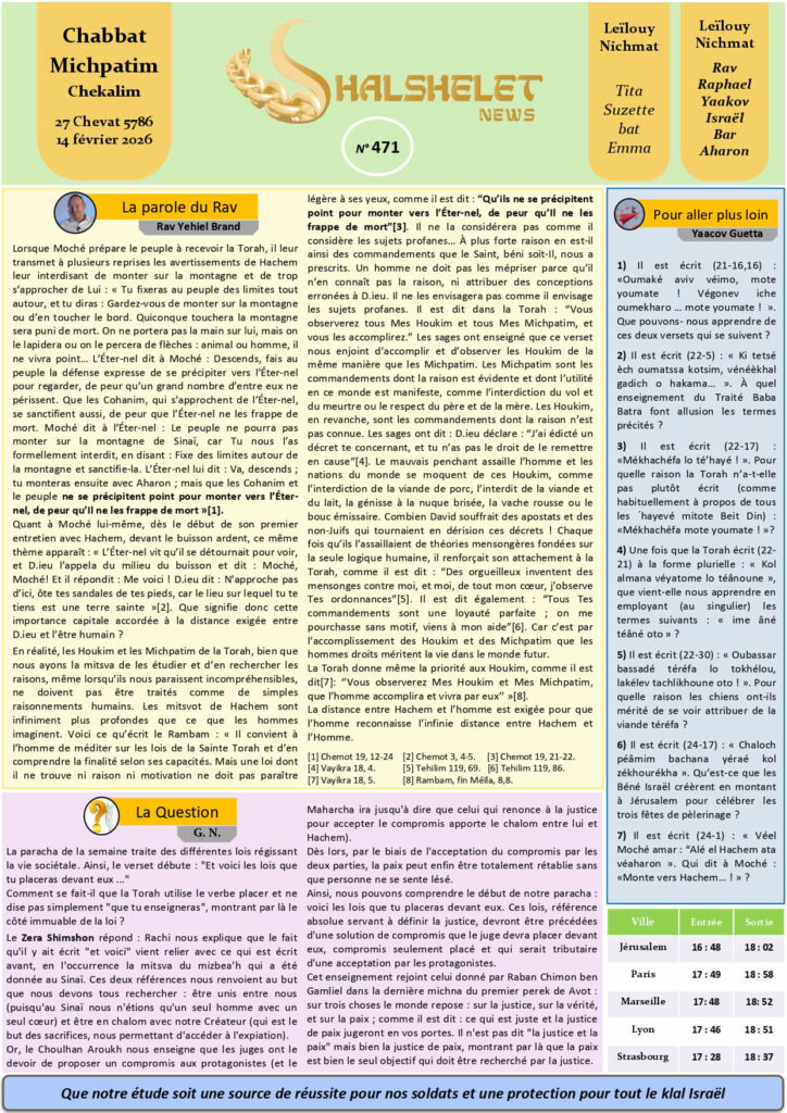 - Les ‘Houkim et les Michpatim de la Torah, par Rav Brand