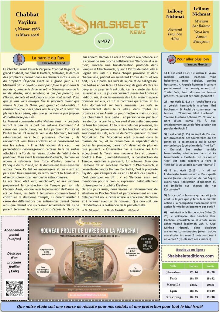 - Juste avant la venue du Machia’h… par Rav Brand