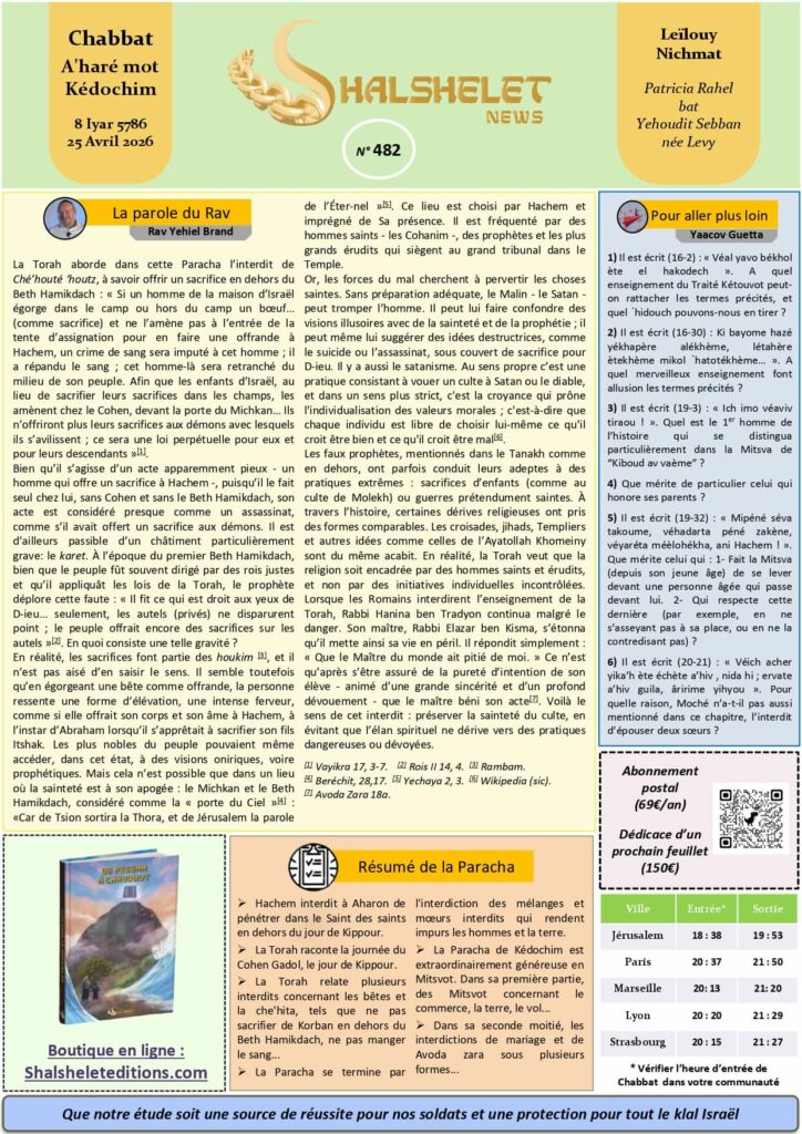 - Préserver la sainteté de nos pratiques, par Rav Brand